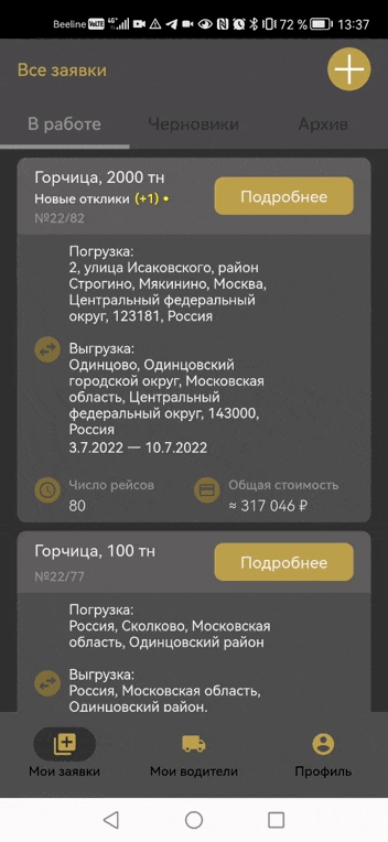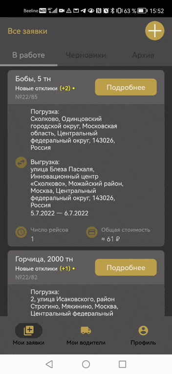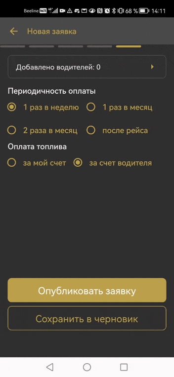 Когда вы публикуете заявку после того, как добавили в заявку своих водителей, она по-прежнему публикуется на общей бирже водителей, но также отправляются личные приглашения выбранным заказчикам. Если вы хотите работать исключительно с теми, кого вы добавили при создании заявки, просто отклоняйте запросы всех остальных водителей в откликах (см. об откликах ниже).